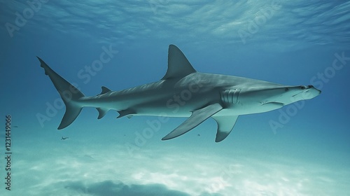 © Yopi, Obraz premium Grey Shark Underwater in Blue Ocean Sunlight