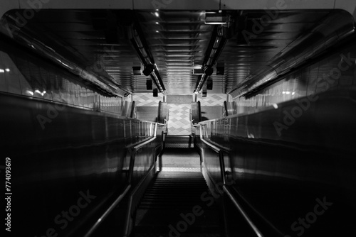 Fototapeta premium Grey shot of an escalator in the train station