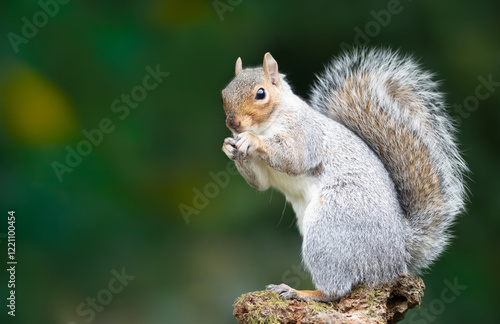 © giedriius, Fototapeta premium Grey squirrel eating nuts on a mossy tree branch