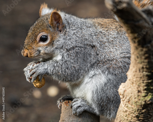 Obraz premium Grey Squirrel Feeding on Nuts