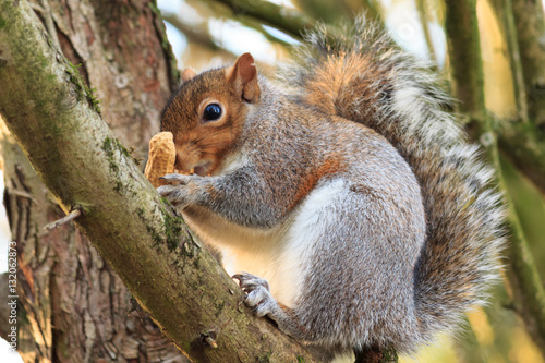 Obraz premium Grey Squirrel in tree with nut