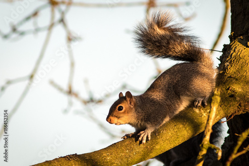 Obraz premium Grey Squirrel in Winter Sunset