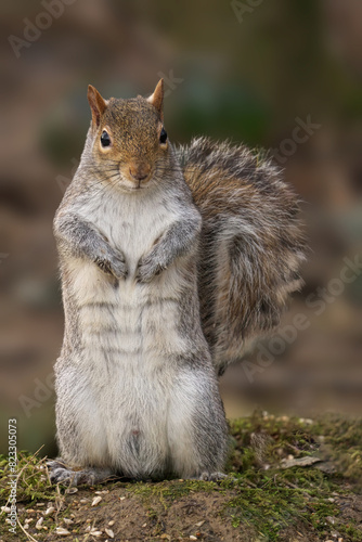 © Wirestock, Obraz premium Grey squirrel perched on a grassy mound