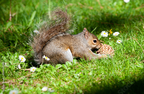 © Sunday, Obraz premium Grey Squirrel (Sciurus carolinensis) with pine cone