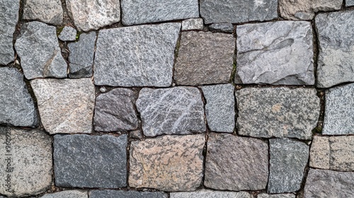 © Narongsag, Fototapeta premium Grey Stone Pavement Texture Background Rustic Cobblestone Close Up