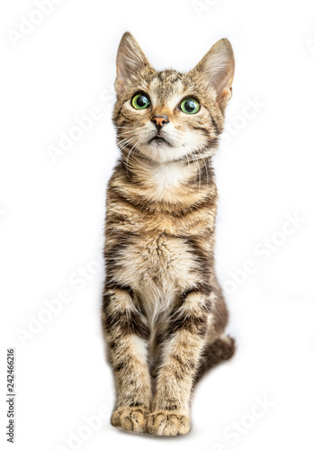 Fototapeta premium Grey striped cat isolated on white background