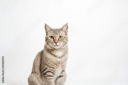 Fototapeta premium Grey tabby cat sitting on a white background