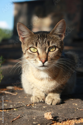 © Tora Stark, Fototapeta premium Grey tabby kitten in the park