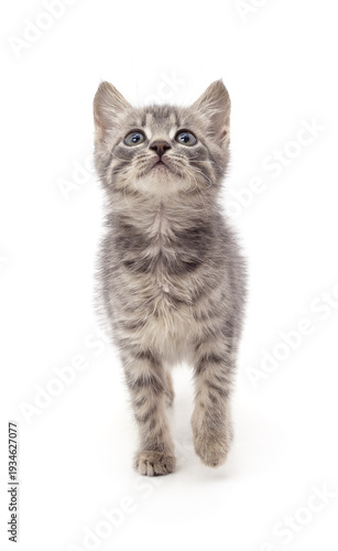 Fototapeta premium Grey tabby kitten looking up.