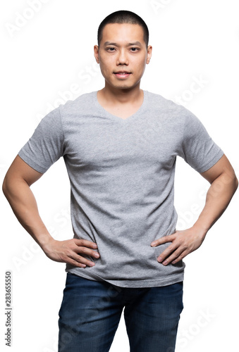 © RooftopStudioBangkok, Fototapeta premium Grey top dry on asian model for mockup template