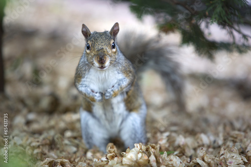 © Pedro Bigeriego, Obraz premium Grey tree squirrel feeding on the ground