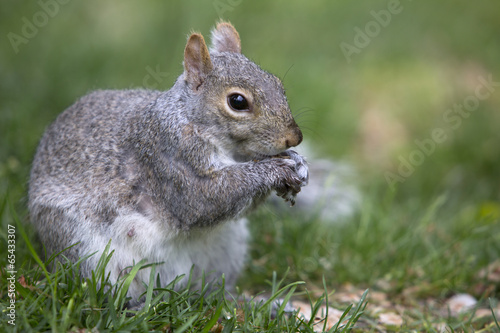 © Pedro Bigeriego, Obraz premium Grey tree squirrel feeding on the ground