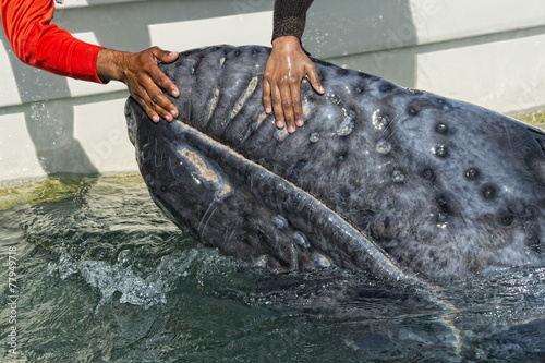 © Andrea Izzotti, Fototapeta premium grey whale approaching a boat