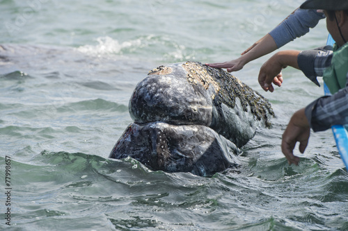 © Andrea Izzotti, Fototapeta premium grey whale approaching a boat