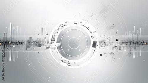Obraz premium Grey white Abstract technology background with various technology elements Hi-tech communication concept innovation background Circle empty space for your text