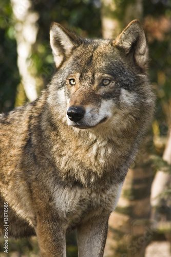 © Colette, Fototapeta premium Grey wolf between birch trees in winter sun