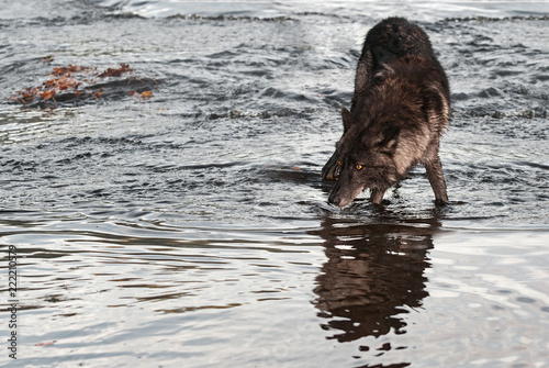 Fototapeta premium Grey Wolf (Canis lupus) Turns in Water