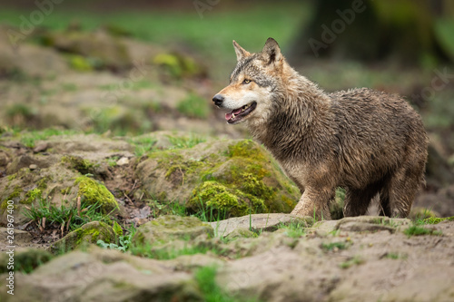 Obraz premium Grey Wolf in the rain