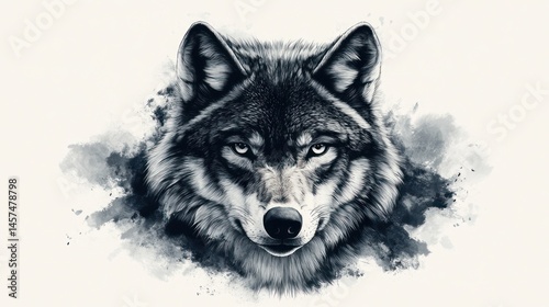 © ikk.gtg, Fototapeta premium Grey wolf portrait with moody background