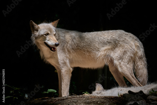 Fototapeta premium Grey Wolf standing in the Sun