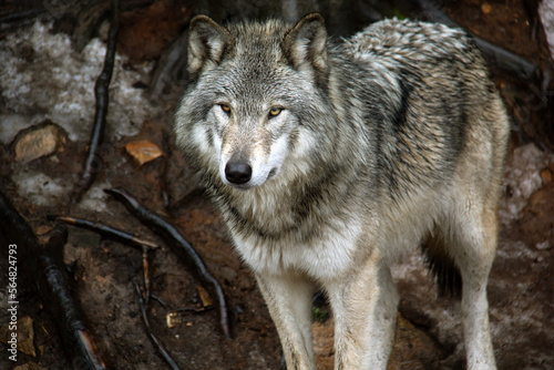 © SofotoCool, Fototapeta premium Grey wolf standing on snow