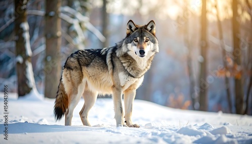 © Suro, Naklejka premium Grey wolf winter forest portrait.