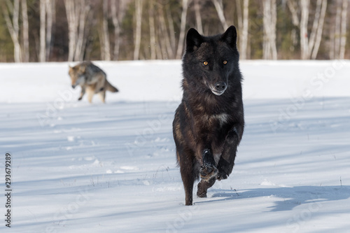 Obraz premium Grey Wolves (Canis lupus) Run In In Snowy Field Winter