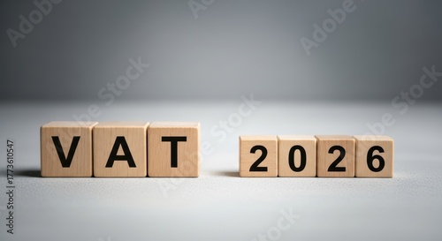 Obraz premium Grey Wooden Cube with Tax & VAT Symbol Conceptual Business Imagery, Perfect...