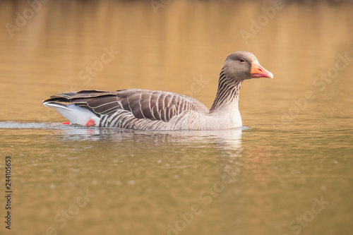 Fototapeta premium Greylag goose, Anser Anser, swimming in a lake