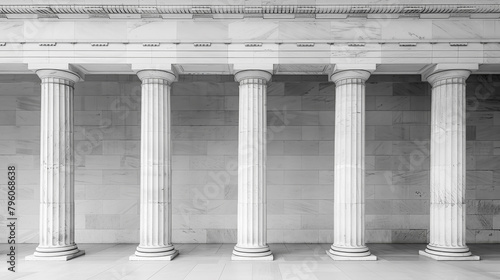 © Rajesh, Obraz premium Greyscale image of a row of classical columns in a symmetrical arrangement
