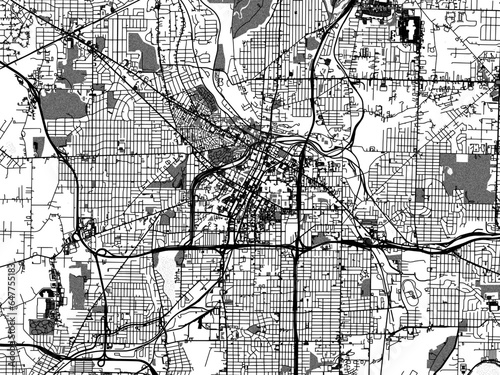 Naklejka premium Greyscale vector city map of Akron Ohio in the United States of America with...