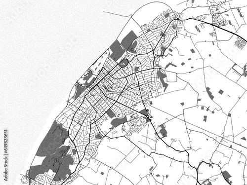 Naklejka premium Greyscale vector city map of Southport in the United Kingdom with with water, fields and parks, and roads on a white background.