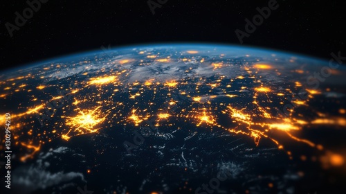 © Generative by J, Obraz premium Grid Computing concept. Illuminated Global Grid Network of Interconnected Cities at Night