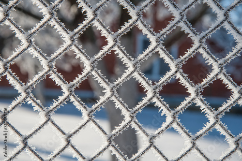 Fototapeta premium grid covered with snow, mesh covered with frost