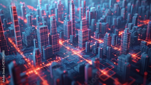 Fototapeta premium Grid Structure: A 3D vector illustration of a futuristic cityscape with...