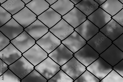 © crisfotolux, Fototapeta premium Grid with blurred sky behind as background (Black and White)