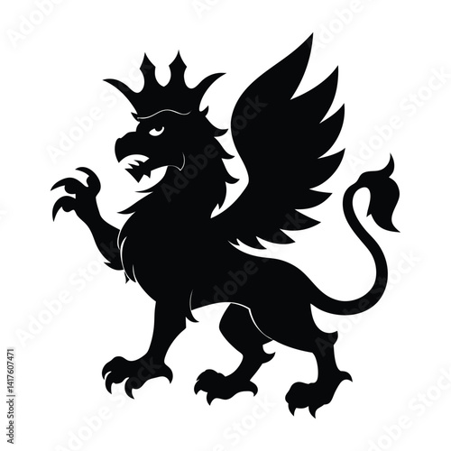 © Pramila, Fototapeta premium Griffin silhouette with crown on white background
