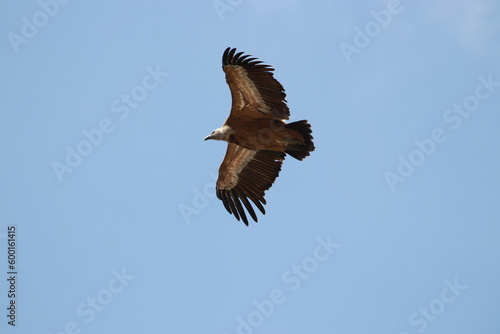 Obraz premium griffon vulture flying on blue sky