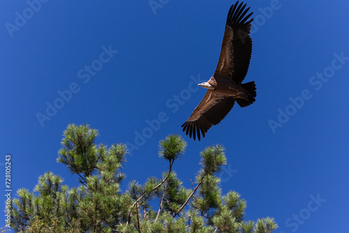 Obraz premium griffon vulture flying over the trees