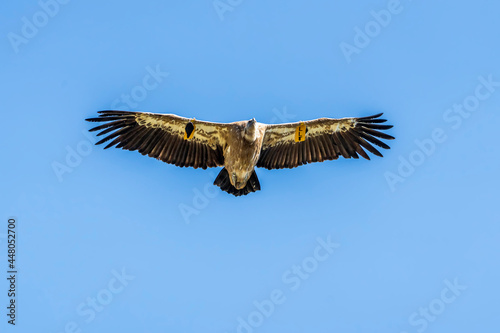 Fototapeta premium Griffon vulture (gyps fulvus) in flight, Alcoy.
