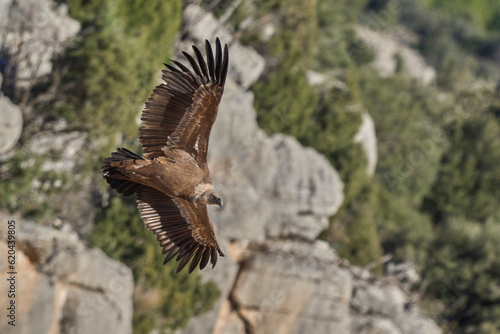 Obraz premium griffon vulture in flight over the ravines