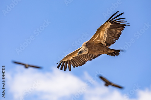 © creativenature.nl, Obraz premium Griffon vultures flying blue sky