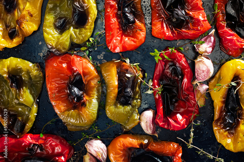 © zi3000, Naklejka premium Grilled bell pepper with garlic and herbs