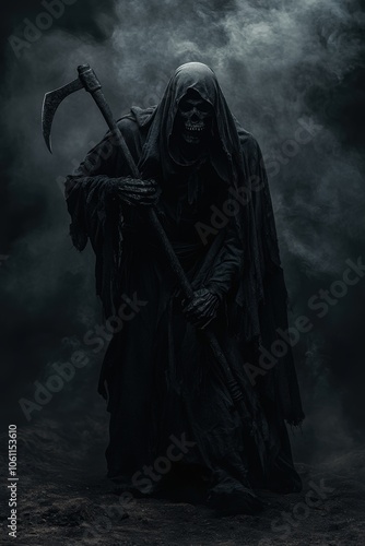 © Joyce, Fototapeta premium Grim reaper with scythe. Halloween theme poster.