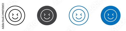 Fototapeta premium Grin emoji icon flat editable icon mark set.