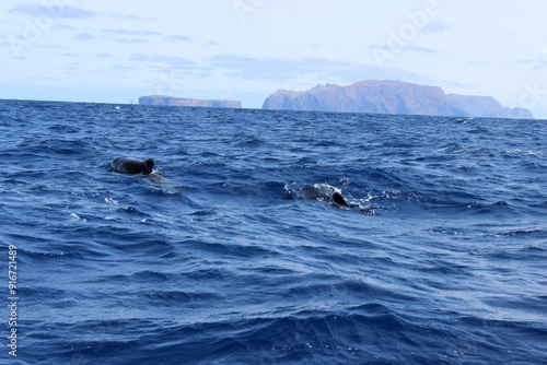 © Reikara, Fototapeta premium Grindwal, Pilotwal,Wale im Meer, Hintergrund, Textur