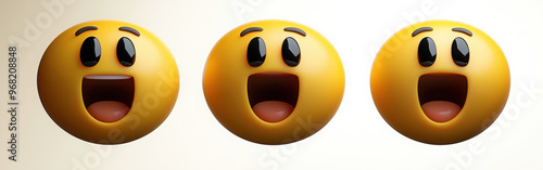 Fototapeta premium Grinning face with big eyes three-dimensional emoji. Happy excited emoticon...