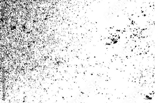 © GraphixWave, Fototapeta premium Gritty black texture overlay with scattered dust particles and speckles on a clean canvas.