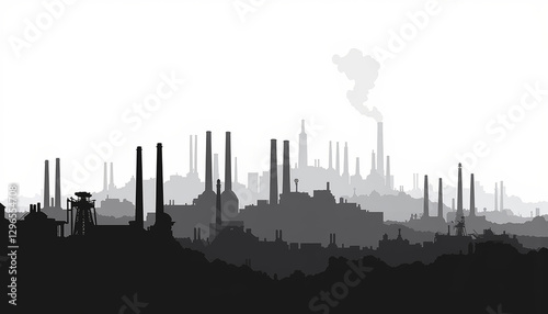 © Tatiana, Obraz premium Gritty industrial city silhouette with smokestacks, urban environment