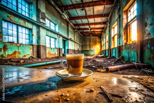 © Autun, Fototapeta premium Gritty urban decay: abandoned building, rusted pipes, cold coffee hues, dark grunge aesthetic.